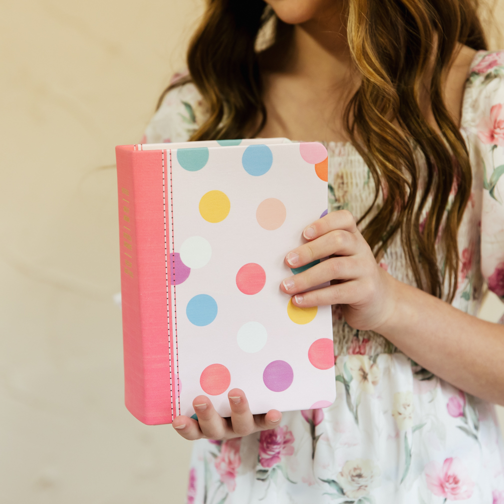 Delight in the charm of patterned scriptures and find a new way to express your faith and personality as you engage with the Holy Scriptures. Our patterns are professionally designed and printed on genuine lambskin leather before being hand-bound with love and care. Savor the sweetness of the scriptures with this polka dot party design. A small taste of the Word of God every day can go a long way. These scriptures are a great gift for baptisms and young women. Over time these scriptures will...