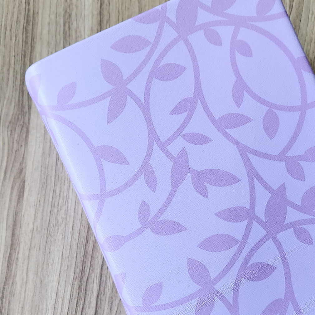 Delight in the charm of patterned scriptures and find a new way to express your faith and personality as you engage with the Holy Scriptures. Our patterns are professionally designed and printed on genuine lambskin leather before being hand-bound with love and care. Graceful vines stretch across the purple backdrop in a pattern that is both stylish and delightful. This monochromatic design balances a sense of peace and creativity. These patterned scriptures are a great gift for women of all...