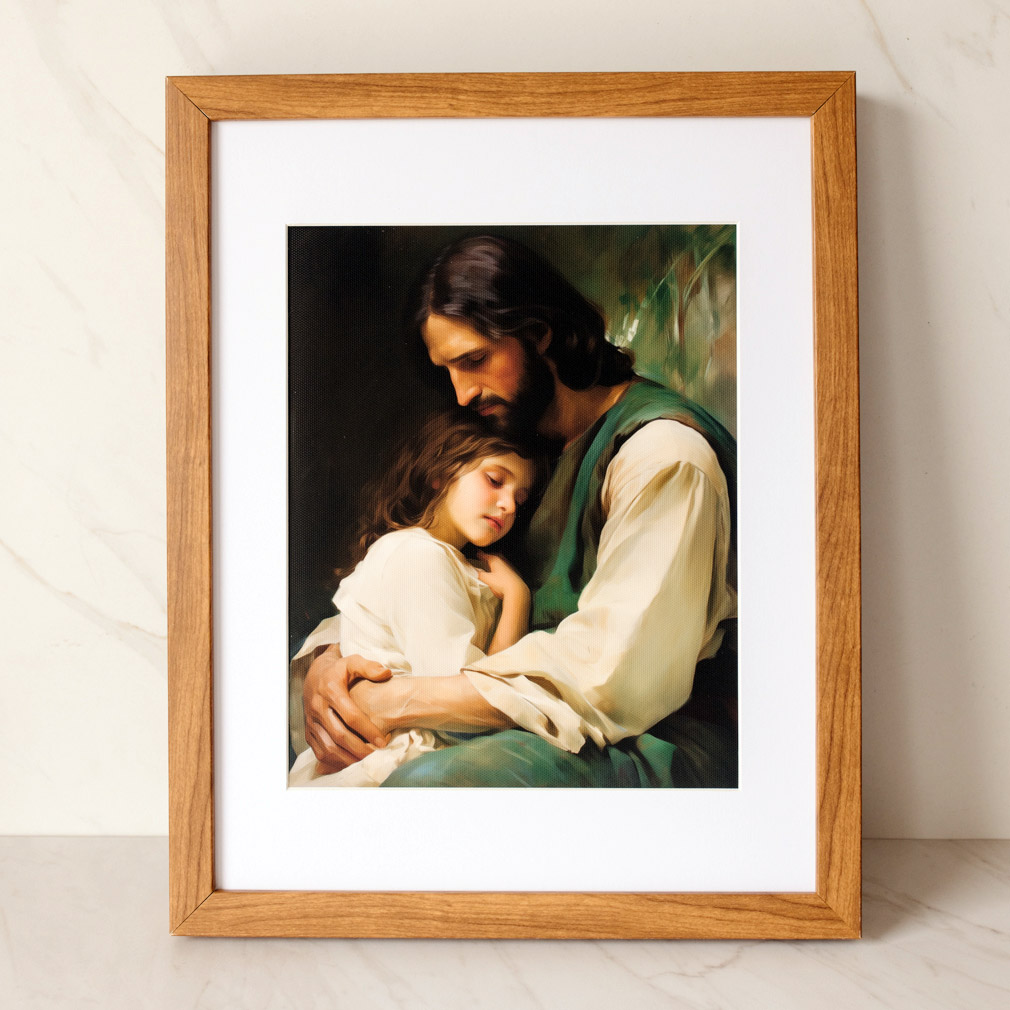 Our framed LDS artwork brings a sense of beauty and spirituality to any home or office. This work features Christ comforting a young child. Our team at LDS Bookstore uses a combination of digital art techniques to make these beautiful exclusive images. Each print is professionally mounted in a simple, modern frame. Choose from either durable matte paper or upgrade to matte canvas. UV Glossy Coating is an added layer of protection against scratches and nicks. Featured frames measure 1"...