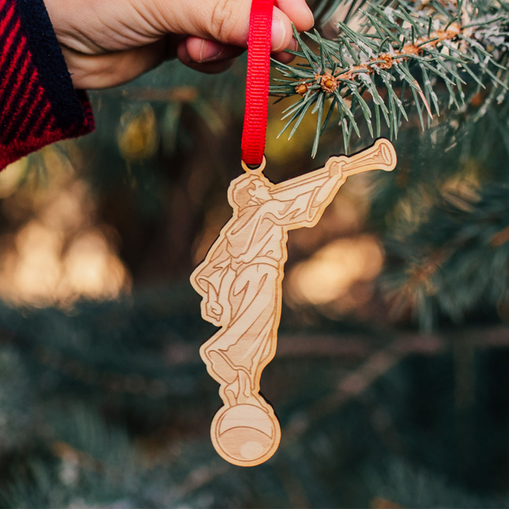 The Angel Moroni represents the coming of Jesus Christ to the world and is especially a symbol of His second coming. Our Cutout Angel Moroni ornament will help you bring the excitement of look forward to Christ's coming into your holiday celebrations. This ornament is made of genuine maple wood and features two-tone engraving for a warm, rustic look. Each one is approximately 3 3/4 inches tall and 2 inches wide at the trumpet. A red ribbon for hanging is included. Add...