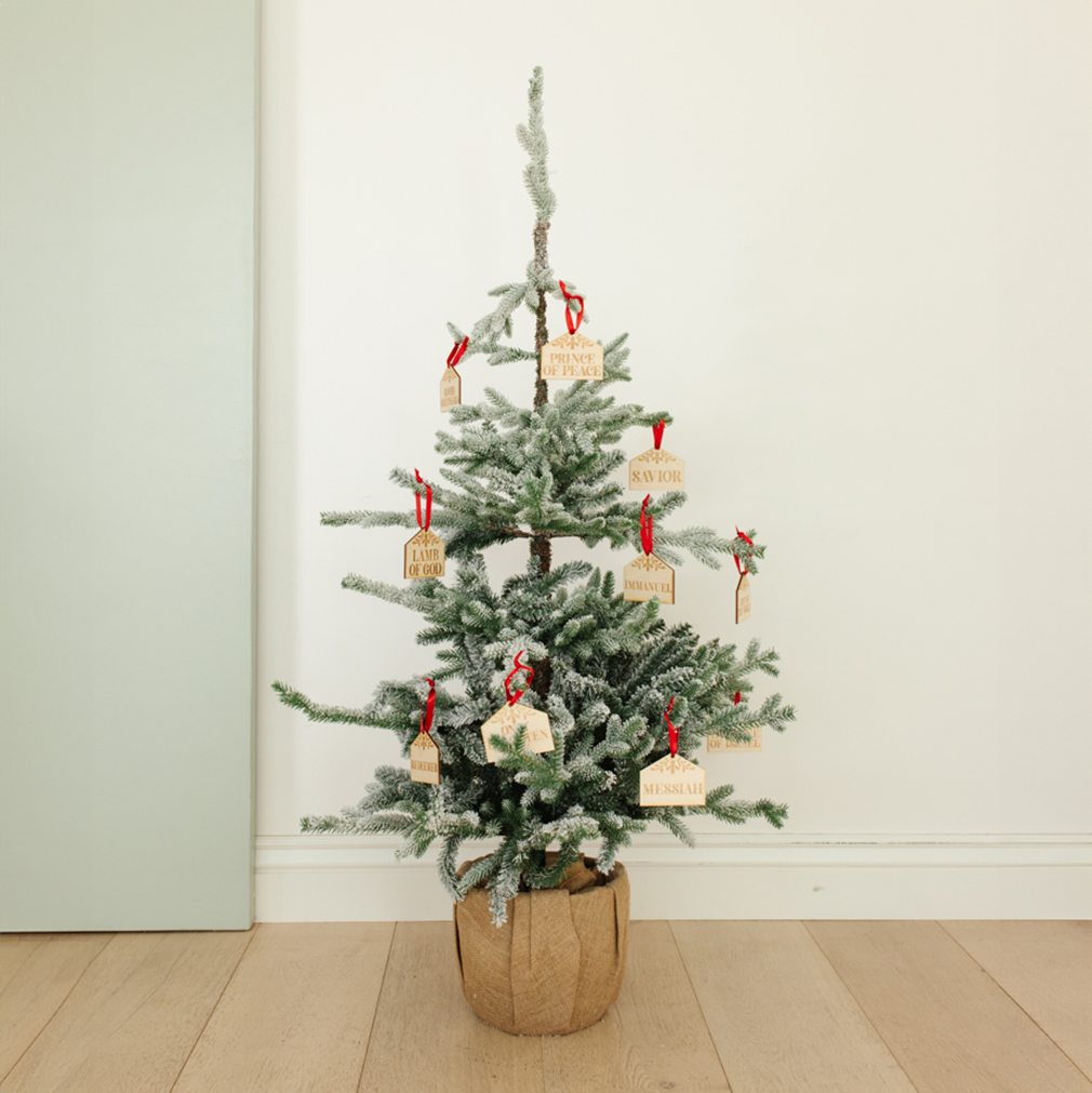 Trim the tree with our inspiring Names of Jesus Ornament Set. With a festive name tag design, the set includes 12 hand-engraved wooden ornaments. Each ornament features a name of Jesus Christ as found in the scriptures. You'll get a satin red ribbon for each ornament.The names included in this set are: ChristRedeemerPrince of PeaceLamb of GodHoly One of IsraelMessiahImmanuelSaviorGood ShepherdLight of the WorldAlpha & OmegaOnly Begotten Son Use our Names of Jesus Ornament Set...