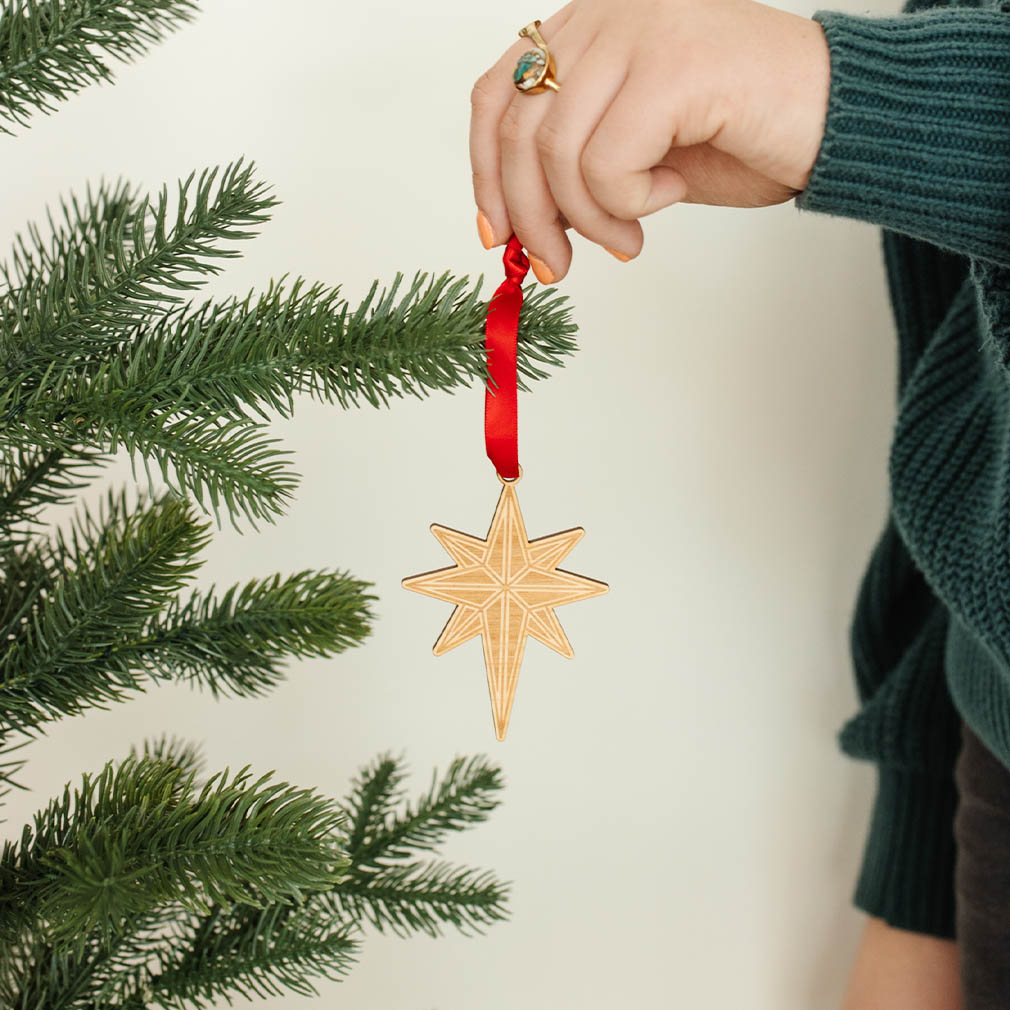 Bring the light of the Savior into your home with our Christmas Star Ornament. Each ornament is hand-engraved with a beautifully intricate design that captures the spirit of the season. Made from durable wood, it’s built to last and makes a thoughtful gift for family and friends. Add a touch of warmth and meaning to your holiday décor with this special keepsake!