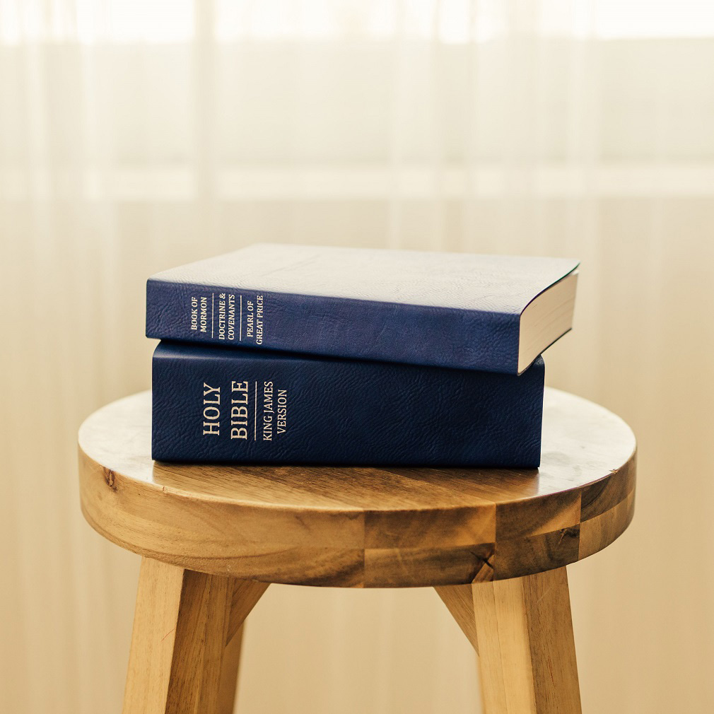 Enjoy beautiful color scriptures at an affordable price with our exclusive line of leatherette covered scriptures. Each combines high-quality, yet economical construction and materials to ensure every member of your family can have a set of scriptures they love. This basic leatherette triple features a classic blue color and silver engraving. Leatherette is a type of simulated leather made for custom engraving. Our classic designs and your personalization won't fade or smudge....