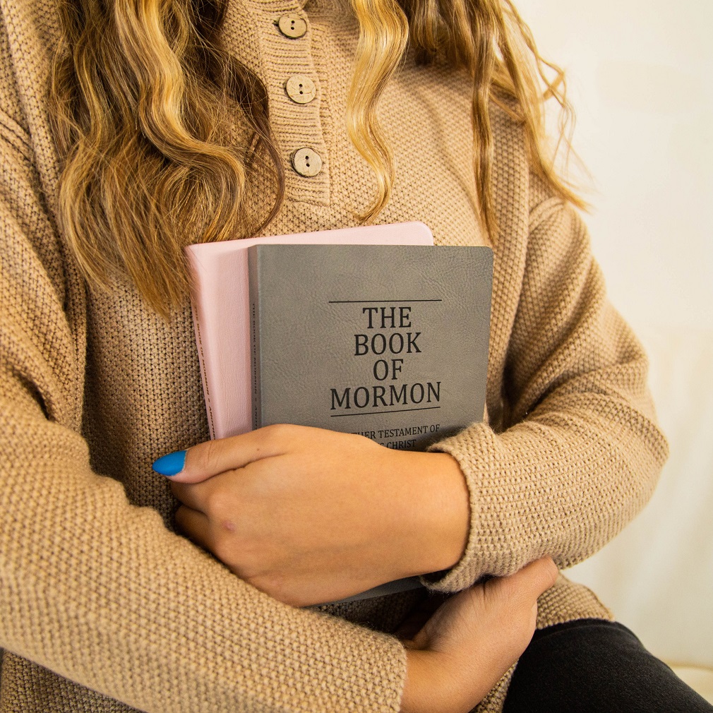 Enjoy beautiful color scriptures at an affordable price with our exclusive line of leatherette covered scriptures. Each combines high-quality, yet economical construction and materials to ensure every member of your family can have a set of scriptures they love. This basic leatherette Book of Mormon features a modern gray color and black engraving. Leatherette is a type of simulated leather made for custom engraving. Our classic designs and your personalization won't...