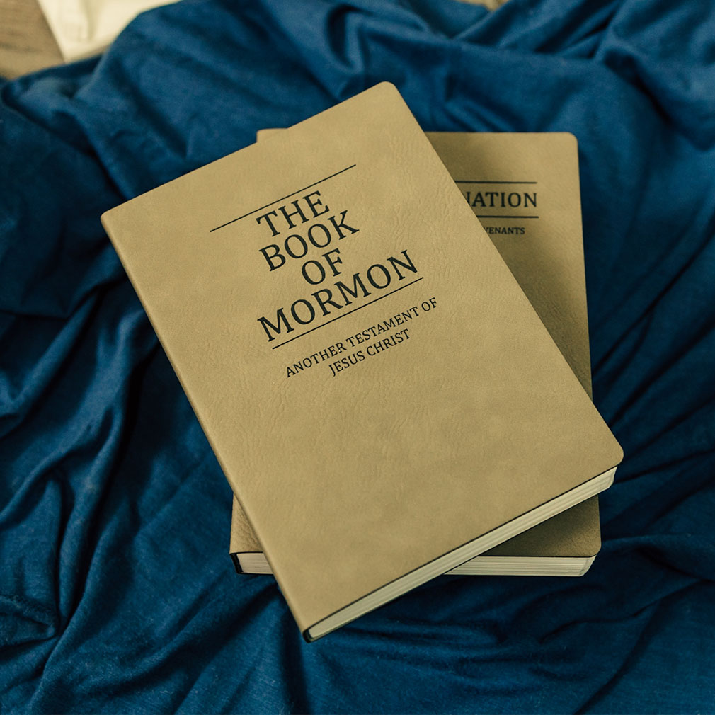 Enjoy beautiful color scriptures at an affordable price with our exclusive line of leatherette covered scriptures. Each combines high-quality, yet economical construction and materials to ensure every member of your family can have a set of scriptures they love. This basic leatherette Book of Mormon features a light brown color and black engraving. Leatherette is a type of simulated leather made for custom engraving. Our classic designs and your personalization won't...