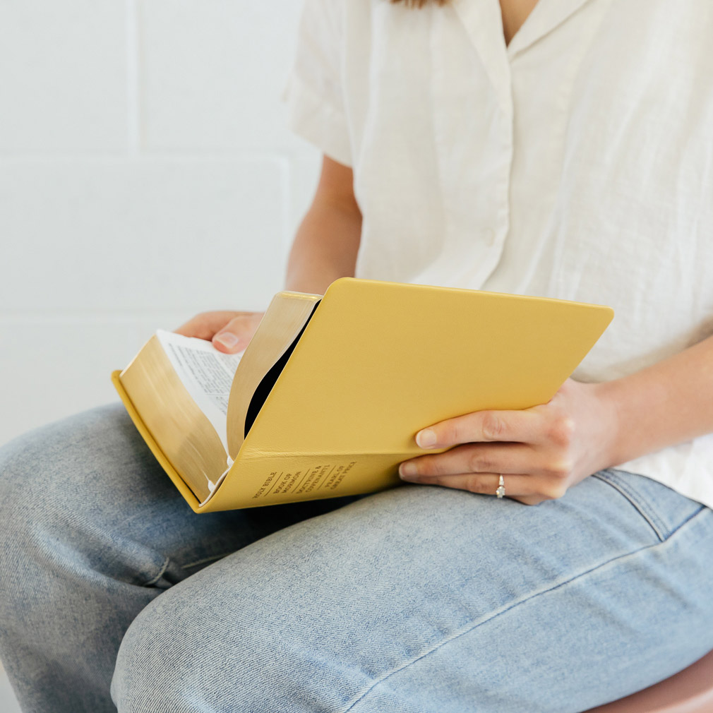 Crafted by hand and with an abundance of love and care, this hand-bound leather quad is a beautiful way to treasure up the word of God. Each one is made from the standard quadruple combination edition of the scriptures and features buttercup yellow sheepskin leather for a luxurious and soft feel. It includes two satin ribbons in the color of your choice; add up to five ribbons for a small fee.  This set of buttercup LDS scriptures was designed to help you fall in love with your...