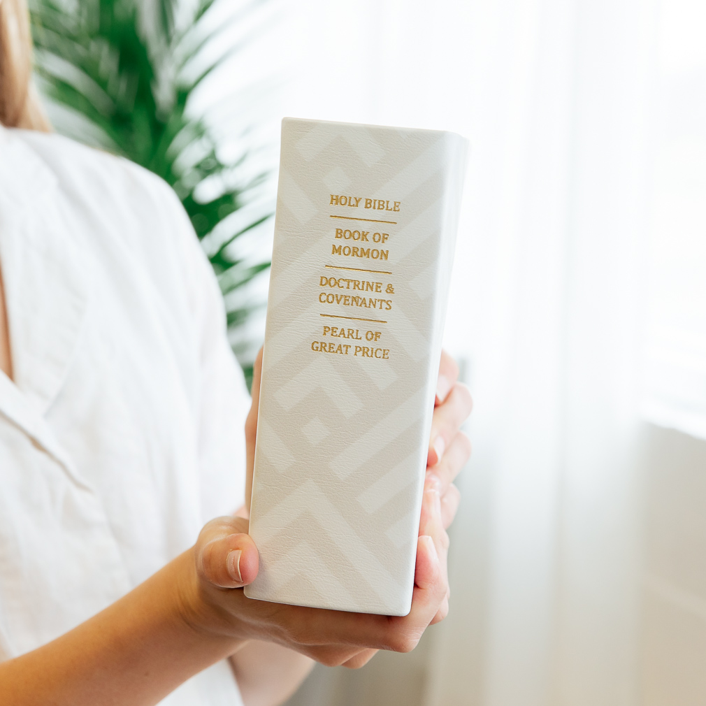 There’s something special about holding a set of scriptures that feels as beautiful as the words inside. Our Hand-Bound Genuine Leather Quad in Petal Ribbon was made to help you fall in love with your study time all over again. Soft to the touch and crafted with care, each set is hand-bound in genuine sheepskin leather and finished in our lovely Petal Ribbon design—a subtle pattern with gentle blush tones that feels calm, timeless, and full of heart. Each quad starts with the standard LDS...