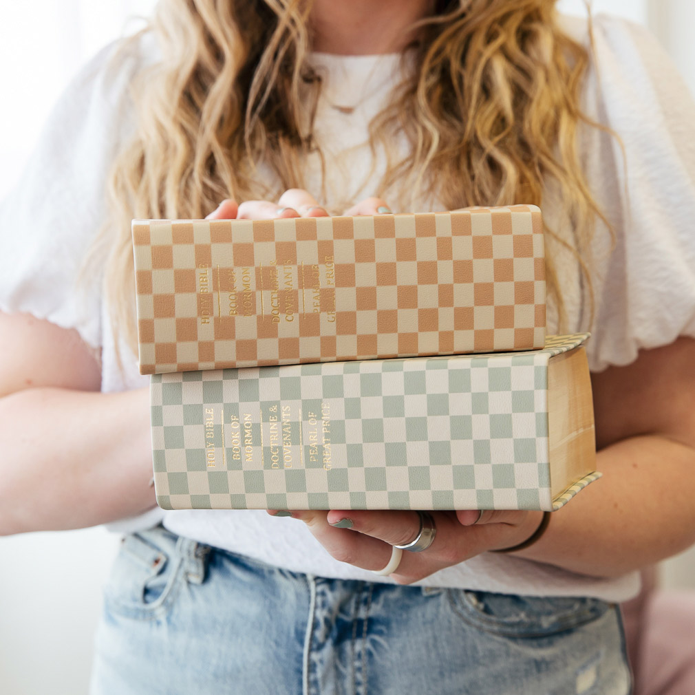 Delight in the charm of patterned scriptures and find a new way to express your faith and personality as you engage with the Holy Scriptures. Our patterns are professionally designed and printed on genuine lambskin leather before being hand-bound with love and care. Savor the simplicity found in this green checkerboard. This pattern brings a sense of style and ease to your studies. These scriptures are a great gift for all ages! Over time these scriptures will become a treasured personal...