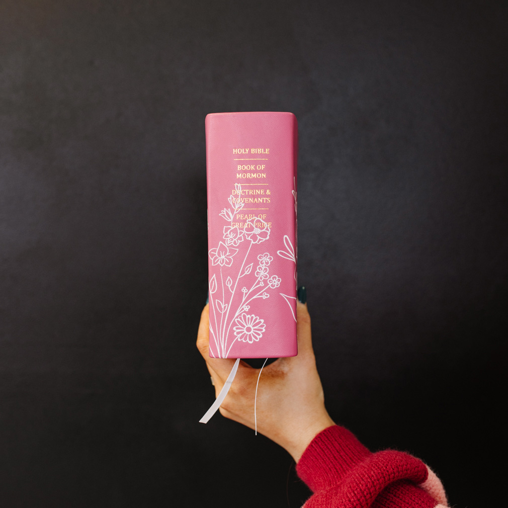 Delight in the charm of patterned scriptures and find a new way to express your faith and personality as you engage with the Holy Scriptures. Our patterns are professionally designed and printed on genuine lambskin leather before being hand-bound with love and care. Unwind with these simple farmhouse flowers wandering across the cover. Take the time to enjoy the beauty of God’s creations all around you. These scriptures are a great gift for young women and relief society sisters. Over time...