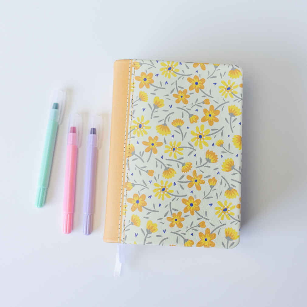 Delight in the charm of patterned scriptures and find a new way to express your faith and personality as you engage with the Holy Scriptures. Our patterns are professionally designed and printed on genuine lambskin leather before being hand-bound with love and care. Become enchanted with these brilliant yellow flowers as they frolic across this cover. A brilliant yellow spine brings an extra element of elegance to this design. These scriptures are a great gift for mothers and...
