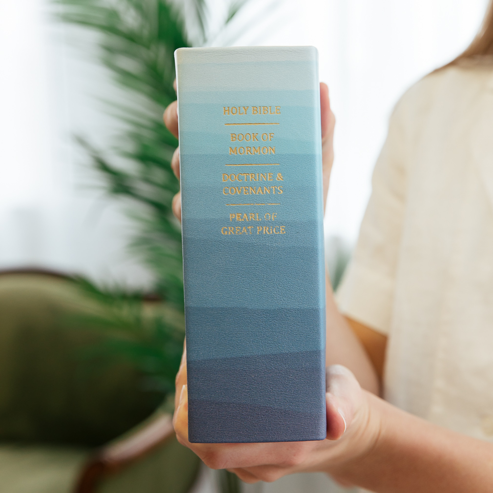 Delight in the charm of patterned scriptures and find a new way to express your faith and personality as you engage with the Holy Scriptures. Our patterns are professionally designed and printed on genuine lambskin leather before being hand-bound with love and care. Relax with the soothing ocean waves with this simple design. Take the time to slow down and enjoy reading the scriptures on your vacation from the world. These scriptures are a great gift for baptisms and missionaries. Over time...