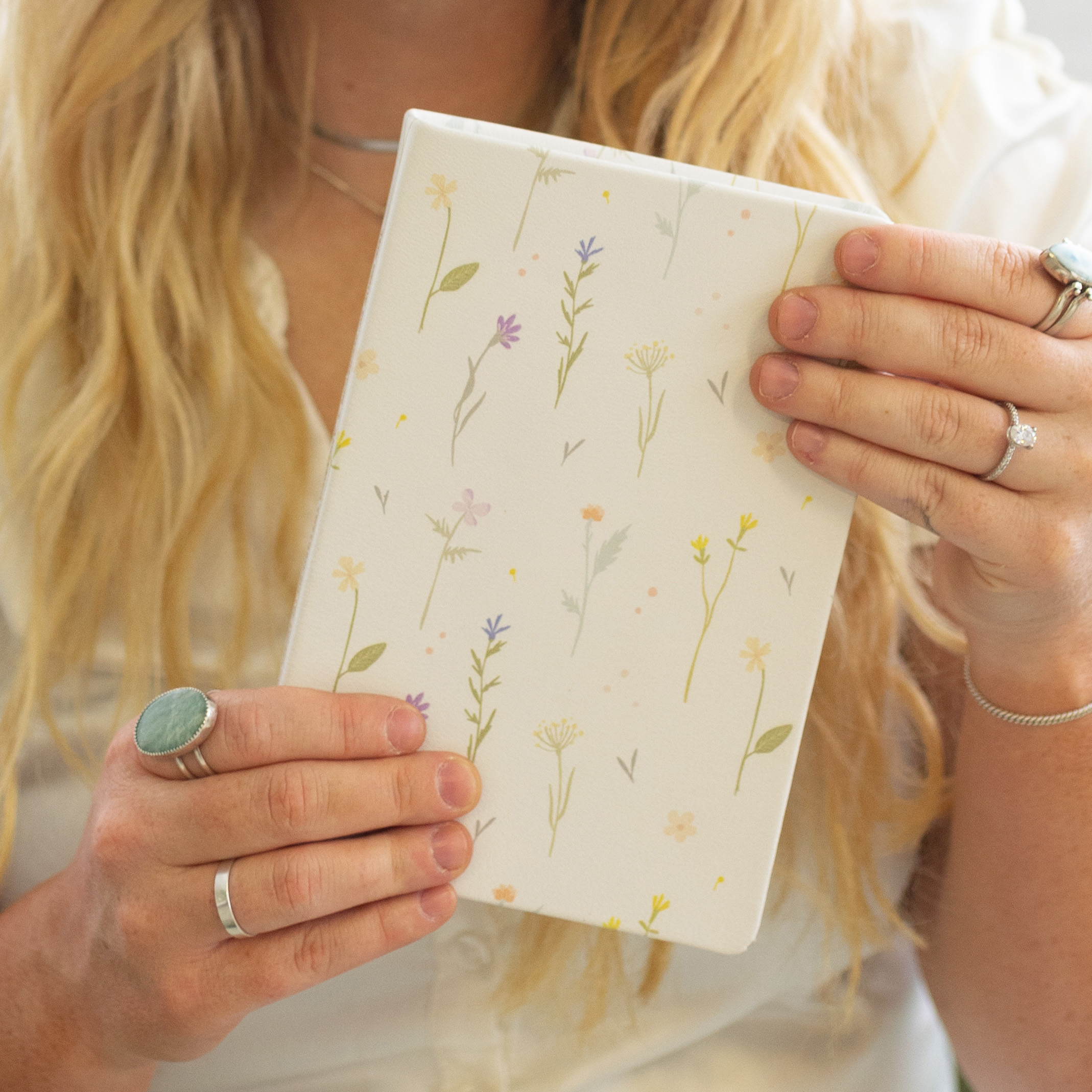 Delight in the charm of patterned scriptures and find a new way to express your faith and personality as you engage with the Holy Scriptures. Our patterns are professionally designed and printed on genuine lambskin leather before being hand-bound with love and care. Enhance your scripture study with these darling white wildflowers as they dance across the cover. This design expresses a sense of lightness and joy. These scriptures are a great gift for young women and relief society sisters....