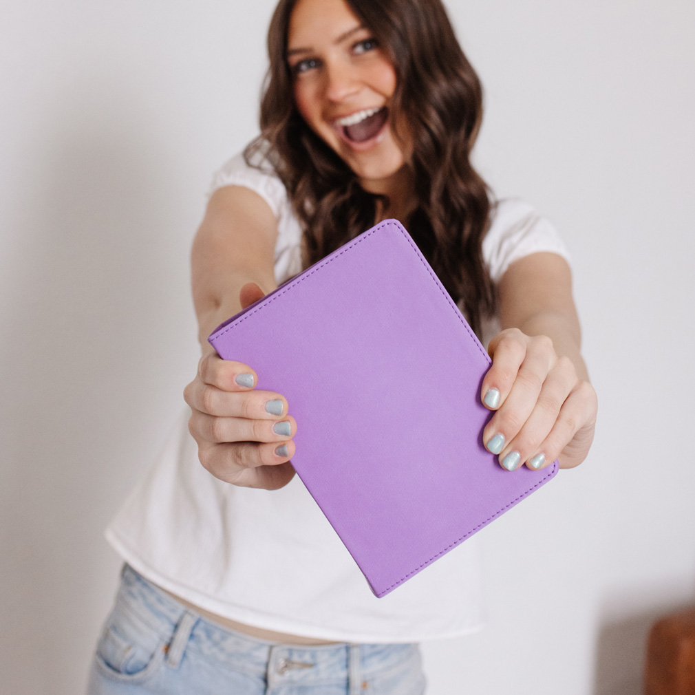 Our wisteria purple simulated leather quad is a new addition to our collection of premium hand-bound scriptures. The cover is made from buttery soft faux leather and features stitching details and a...