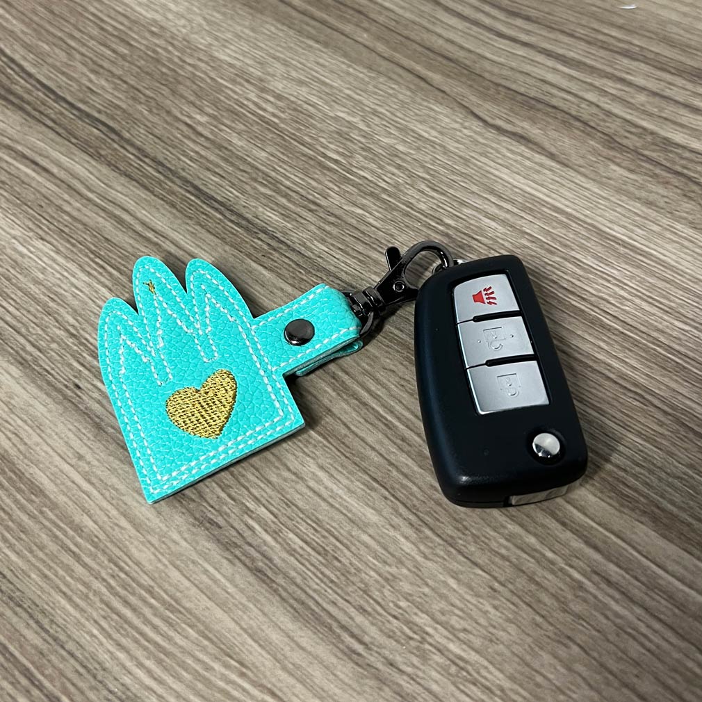 This key chain features a beautiful set of sculpted hands holding to the iron rod.