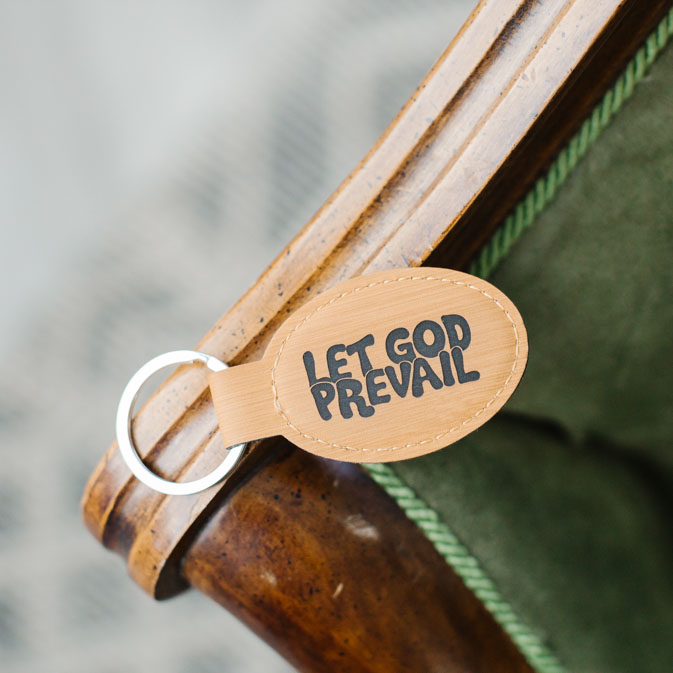 Our leatherette keychain features an elegant let god prevail design in a variety of colors. The leatherette is soft and comfortable. This makes for a great gift and special keepsake for all ages. Available in the following colors: Bamboo, blue, gray, light brown, marble, pink, red, and teal.