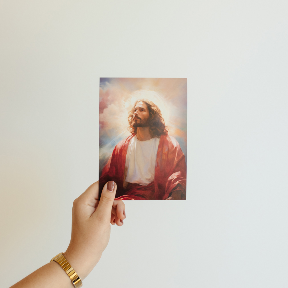 Our exclusive LDS art prints are designed to be compact and bring a sense of beauty and spirituality to your life wherever you go. This work features a beautiful rendition of Christ shining in glory. Each print features inspirational messages on the back to compliment the artwork. Our team at LDS Bookstore uses a combination of digital art techniques to make these beautiful exclusive images. "Faith is the very fiber that gives strength to this work. Wherever this Church is established...