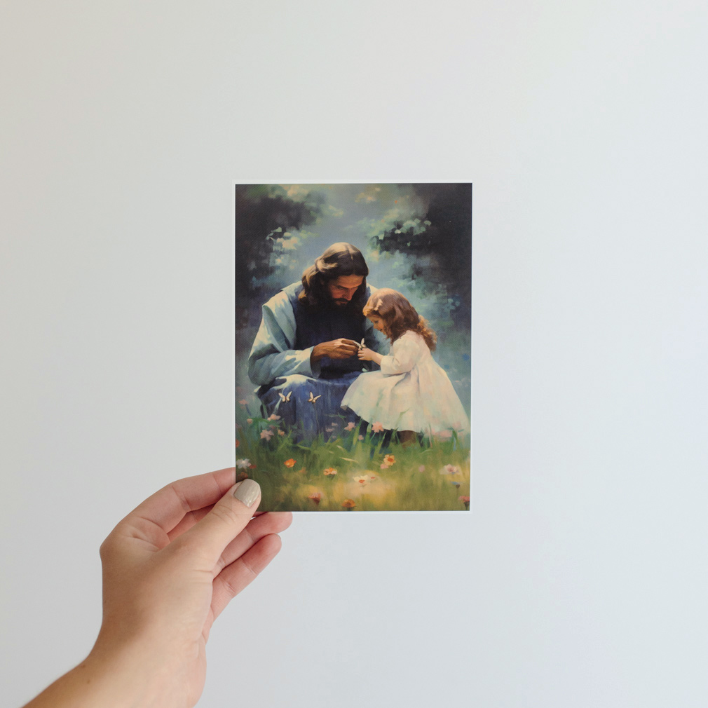 Our exclusive LDS art prints are designed to be compact and bring a sense of beauty and spirituality to your life wherever you go. This work features Christ and a child admiring the beauty of a butterfly. Each print features inspirational messages on the back to compliment the artwork. Our team at LDS Bookstore uses a combination of digital art techniques to make these beautiful exclusive images. "When we have charity, we are willing to serve and help others when it is inconvenient and...