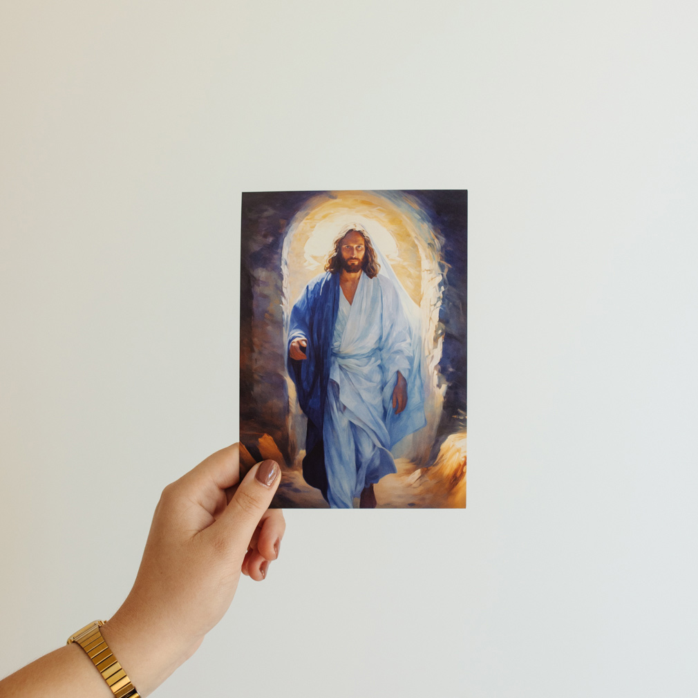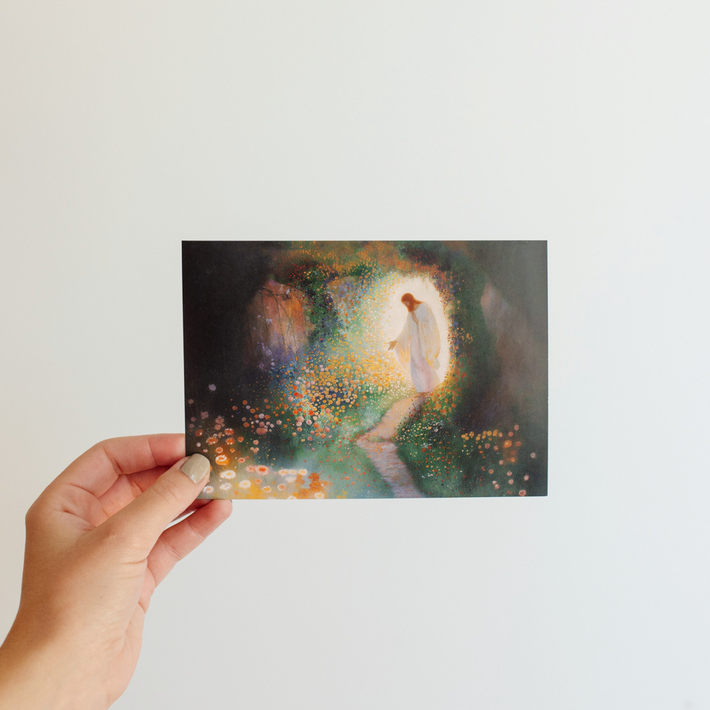 Our exclusive LDS art prints are designed to be compact and bring a sense of beauty and spirituality to your life wherever you go. This work features a beautiful rendition of Christ as he leaves the tomb after His resurrection. Each print features inspirational messages on the back to compliment the artwork. Our team at LDS Bookstore uses a combination of digital art techniques to make these beautiful exclusive images. "I speak of hope in Christ not as wishful thinking. Instead, I speak...