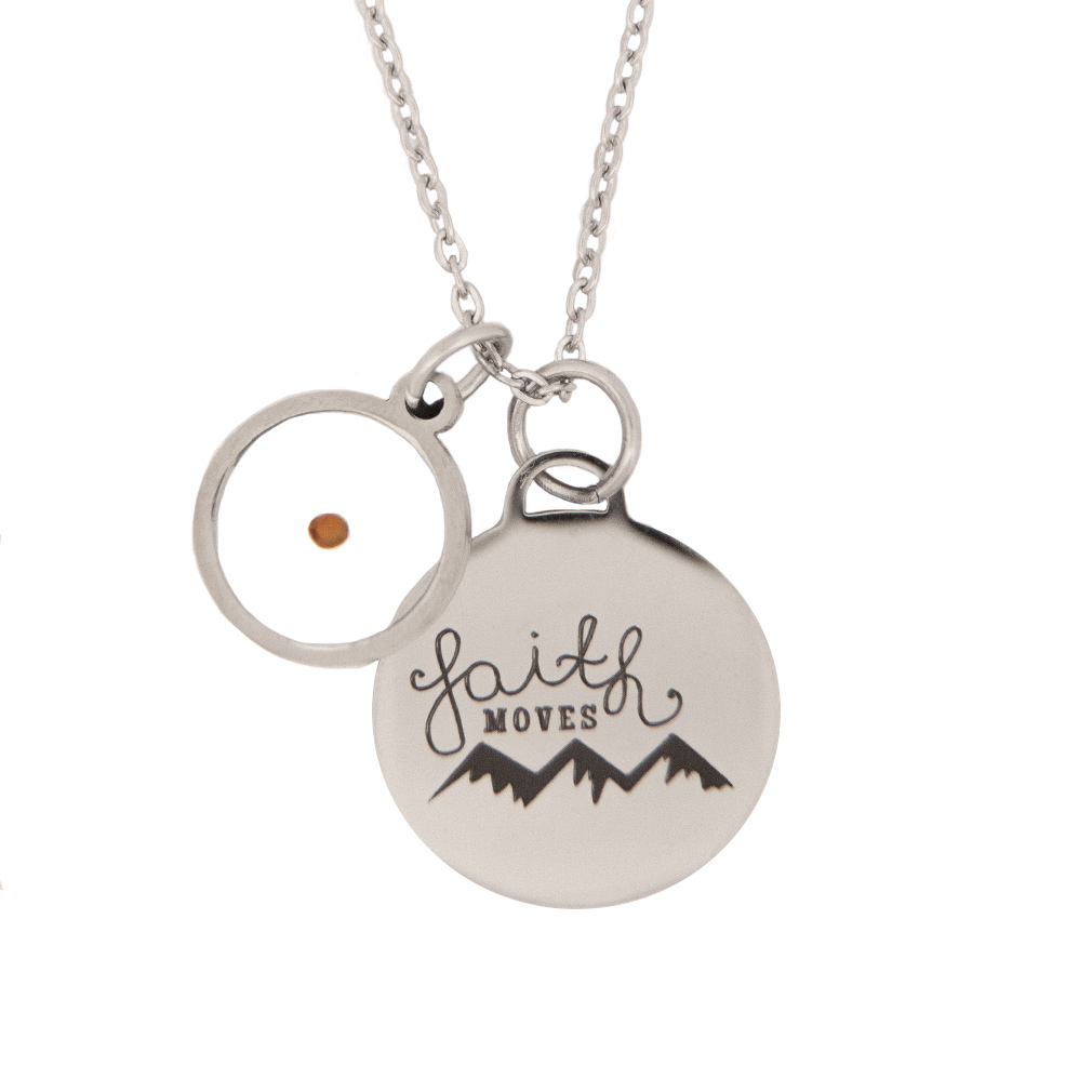 This necklace is a beautiful reminder that even the smallest of faith can move mountains. Matthew 17:20 reads, "for verily I say unto you, If ye have faith as a grain of mustard seed, ye shall say unto this mountain, Remove hence to yonder place; and it shall remove; and nothing shall be impossible unto you."