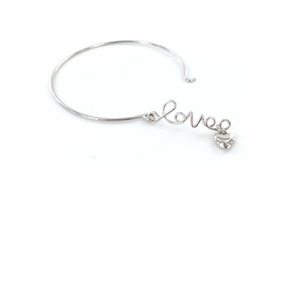 This is the perfect wire bangle bracelet featuring the catch in the shape of the word "love" and a lovely heart charm. The perfect compliment to any attire. Includes the words "Love the Lord" on the...