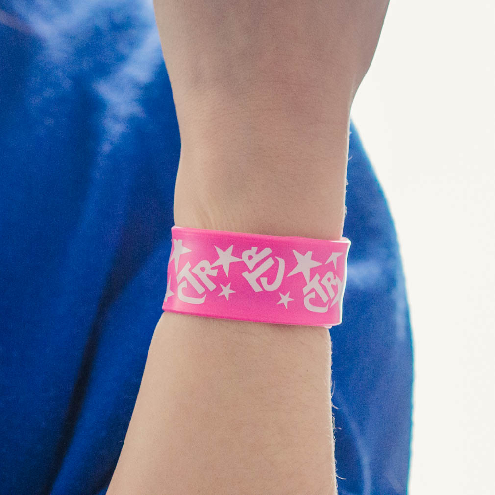 NEW! This pink CTR slap bracelet has CTR and stars on the outside of the bracelet.