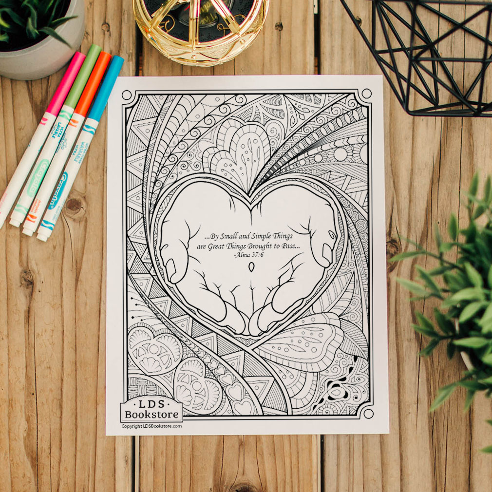 The Book of Mormon teaches us that great things can happen because of small and simple acts. Inspired by Ama 37, this coloring page features a hand holding a small seed with beautiful symbols of...