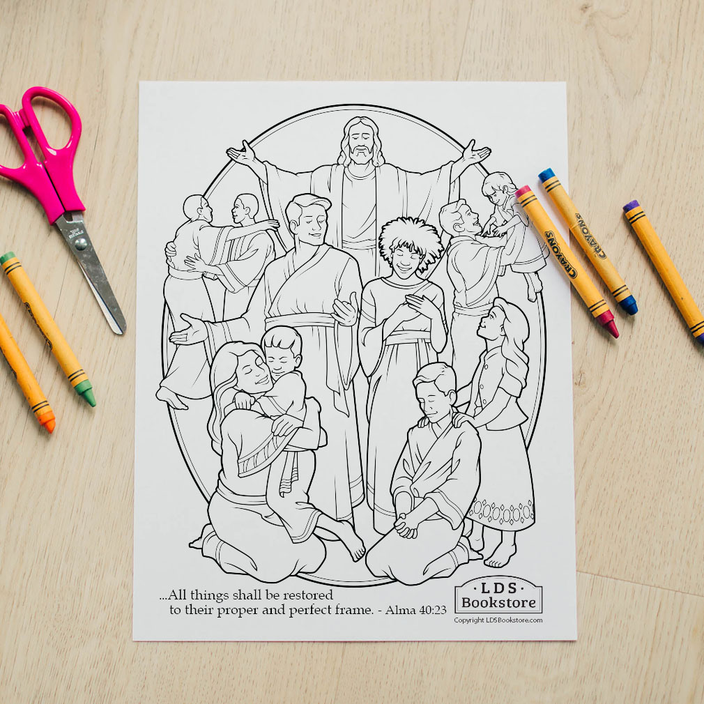 One of the greatest joys of the gospel of Jesus Christ is the knowledge of the resurrection. Inspired by Alma 40, this coloring page celebrates that principle by showing families united and...