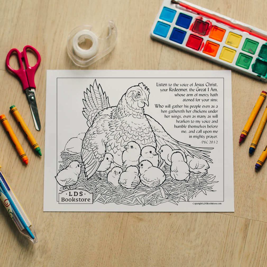 The tender analogy of a hen gathering her chickens has been used by the Lord to describe the gathering of Israel. This coloring page features a hen gathering her chicks to keep them safe. It is...