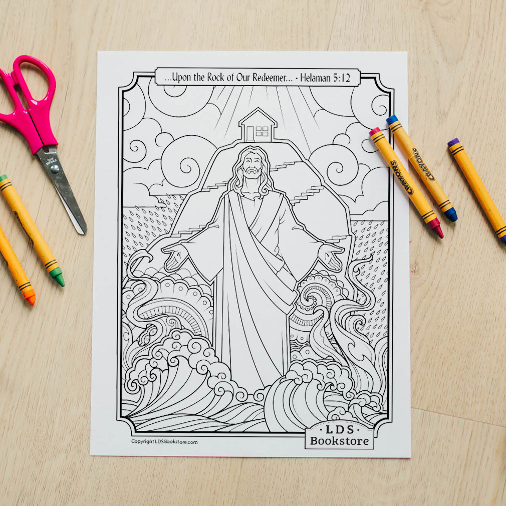 Helaman taught his sons to remember that they should building their foundation upon the rock of their redeemer. Inspired by the beloved verse in Helaman 5, this coloring page features Jesus...