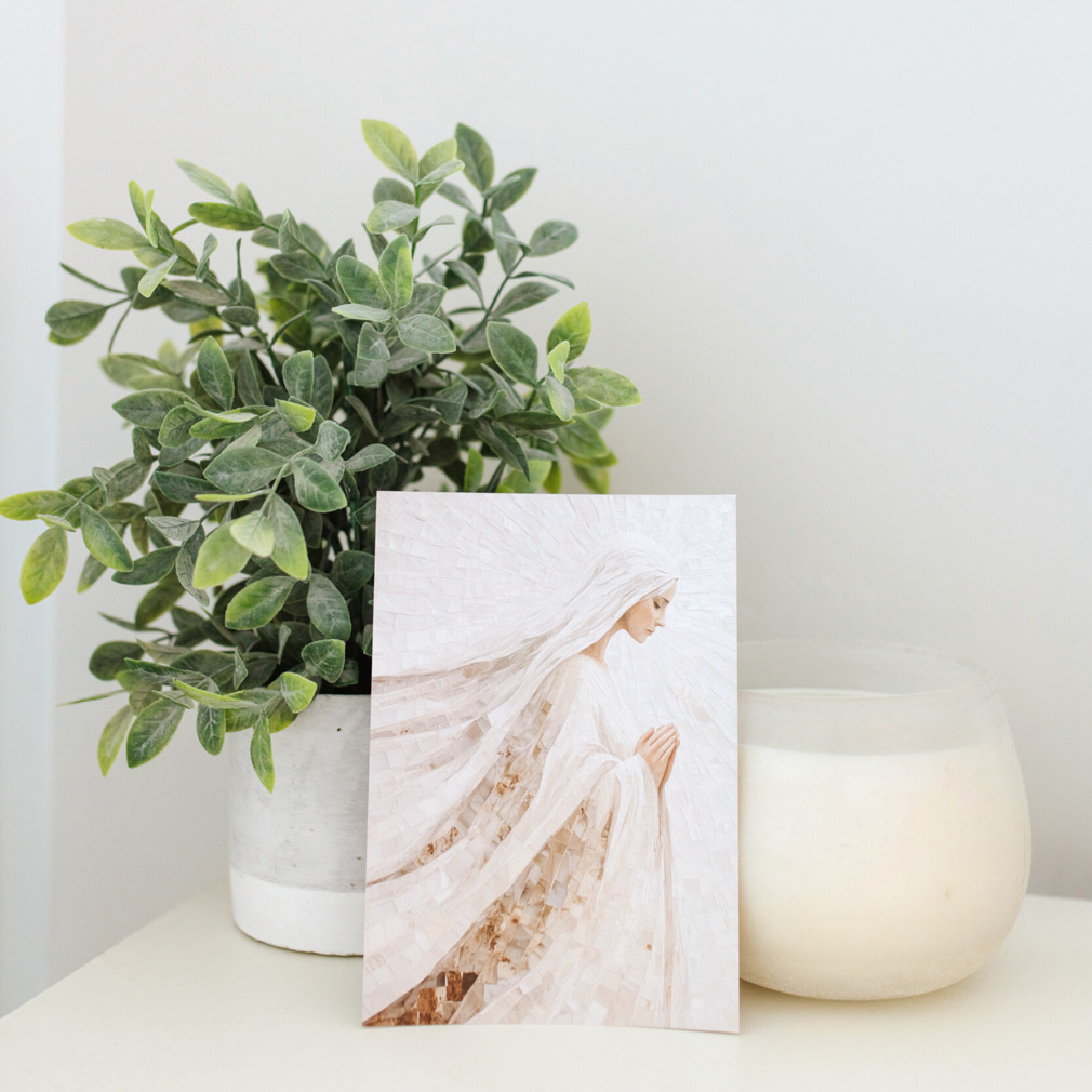 Our exclusive LDS art prints are designed to be compact and bring a sense of beauty and spirituality to your life wherever you go. Entitled "Our Mother in Heaven," this art piece seeks to depict our Heavenly Mother in reverence and glory. Our team at LDS Bookstore uses a combination of digital art techniques to make these beautiful exclusive images.
