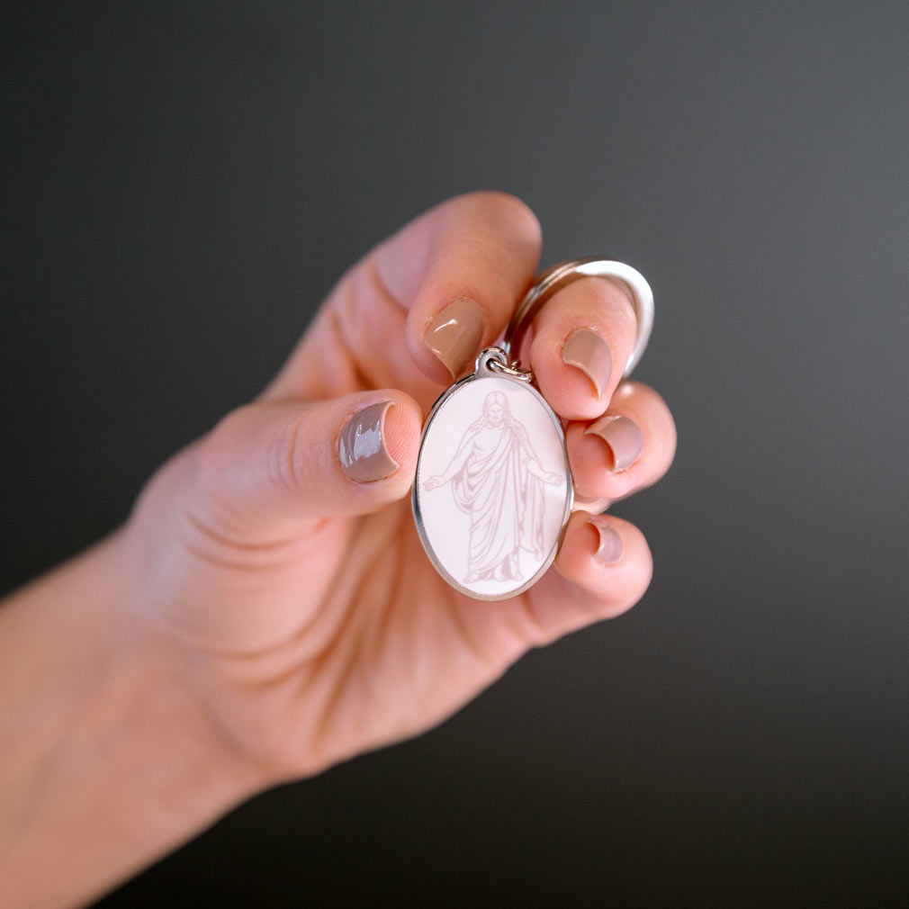 Our Christus keychain features an elegant Christus design to remind you of the importance of Christ in your day to day life. The keychain is made of silver enamel with a matching keyring. This makes for a great gift for missionaries, friends, and family. "If we have faith in Jesus Christ, the hardest, as well as the easiest, times in life can be a blessing." Henry B. Eyring"First and forever fan the flames of your faith, because all things are possible to them that believe." Jeffrey R....