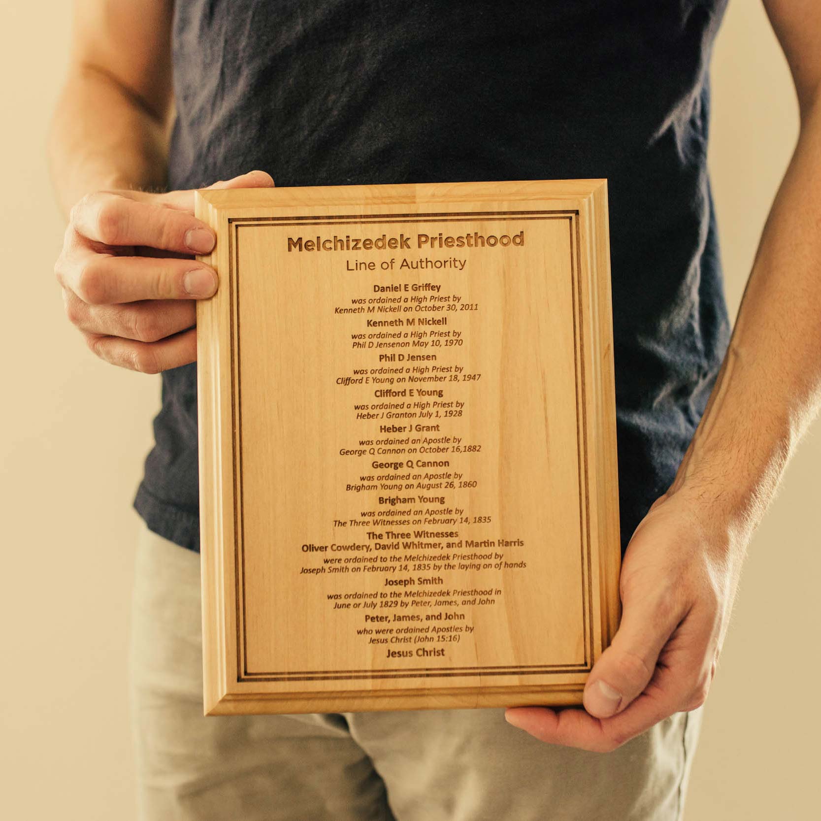 Honor the heritage and faith of your priesthood legacy with our new Priesthood Line of Authority Wood Plaque. Made of the highest-quality genuine red alder and expertly engraved, each plaque is...
