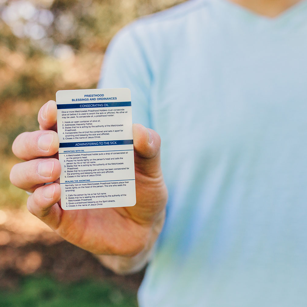 Be prepared in any situation with our new Pocket Priesthood Ordinance Card. Each one is designed to keep the instructions for priesthood ordinances right at your fingertips. Made of durable plastic...