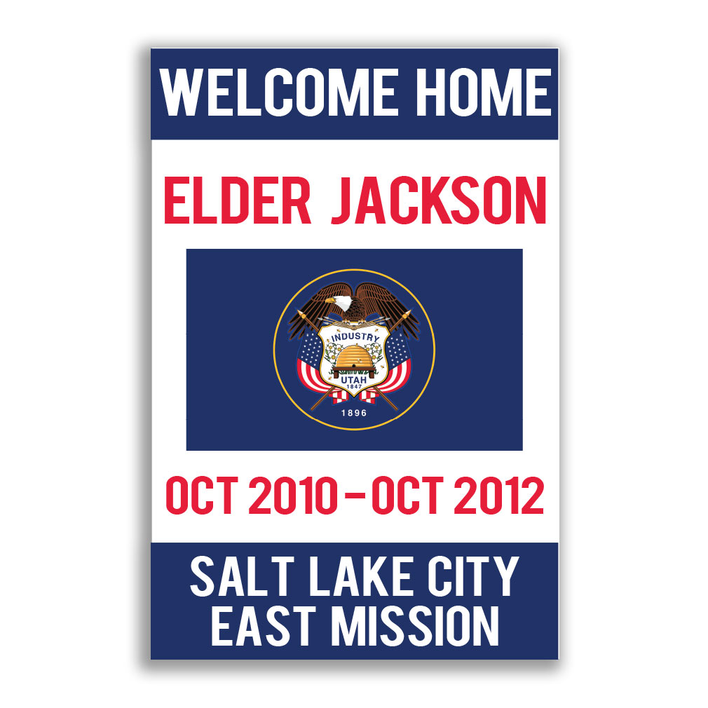 This exclusive LDSBookstore.com Flag Missionary Banner is a perfect welcome home banner for missionaries. It is customizable and comes with colors that match the U.S. state or country flag of the missionary. Enter the name of the mission and missionary above and it will be printed on the poster, along with the corresponding flag. This is a fun product for the entire family to pick and present as a missionary comes home!This 60 x 24 inch banner comes as a coated matte finish print on 35lb...