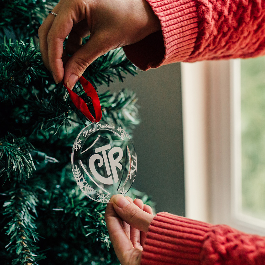 Invite the true spirit of Christmas into your holiday decor with our exclusive CTR Ornament. Made of durable acrylic, this ornament is custom engraved for a wintry, frosted look. It features a fun...