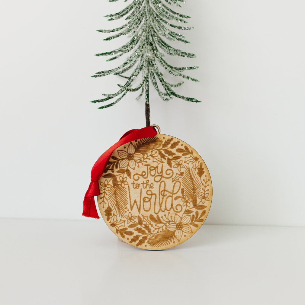 Add a touch of elegance to your holiday décor with our beautifully crafted Joy to the World Ornament. Made from durable wood, this ornament features a hand-engraved design with intricate details and the inspiring phrase "Joy to the World." Each piece is thoughtfully created to bring warmth and cheer to your Christmas tree, making it a lasting addition to your holiday traditions. Hang it with the included red ribbon for a charming, festive accent that embodies the spirit of the season. Perfect...