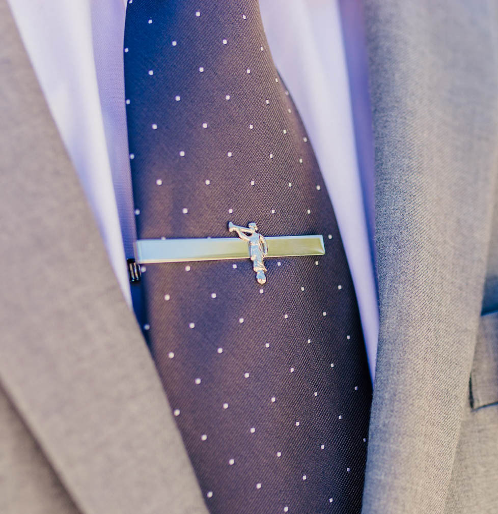 This CTR Tie Clip is made of Pewter and plated with silver.