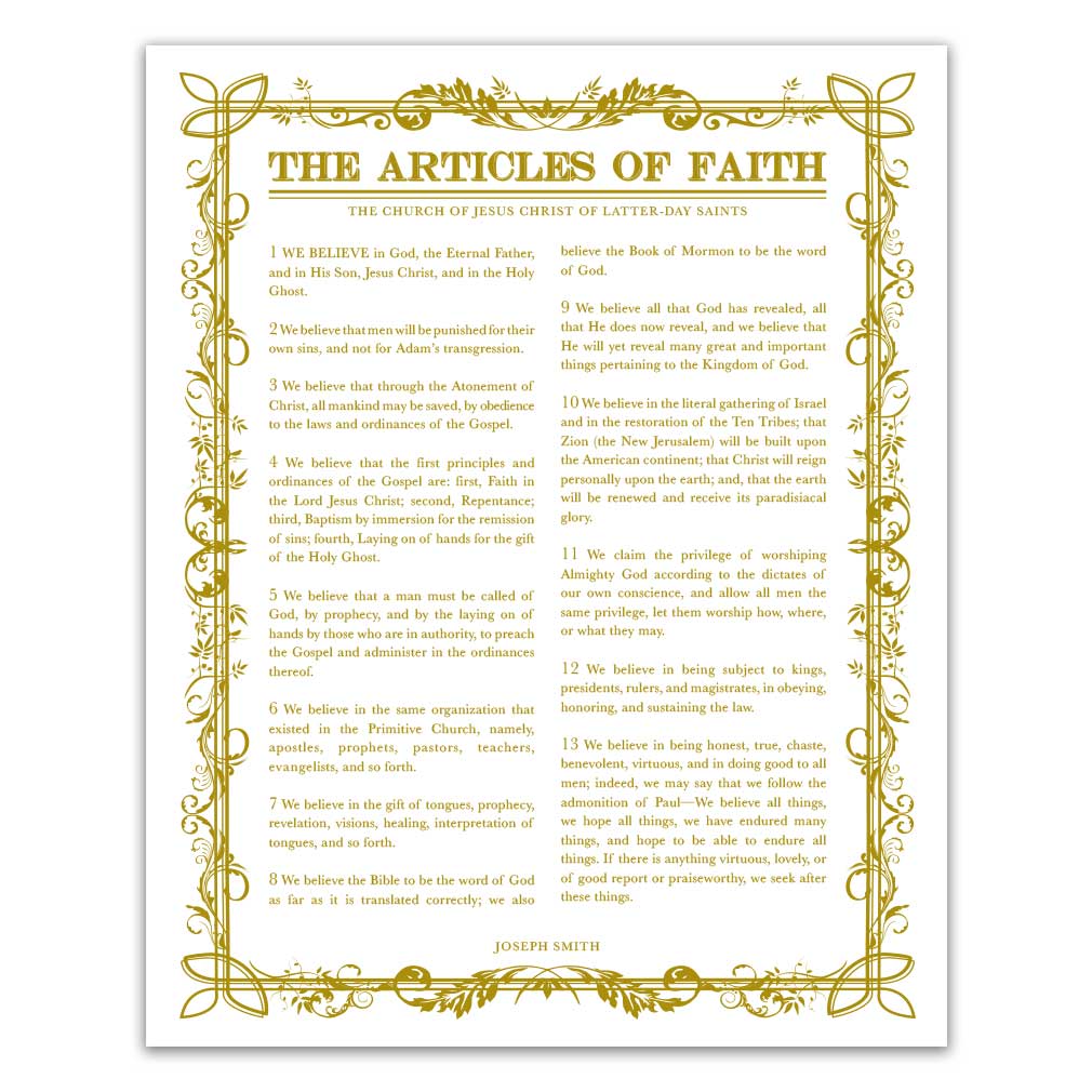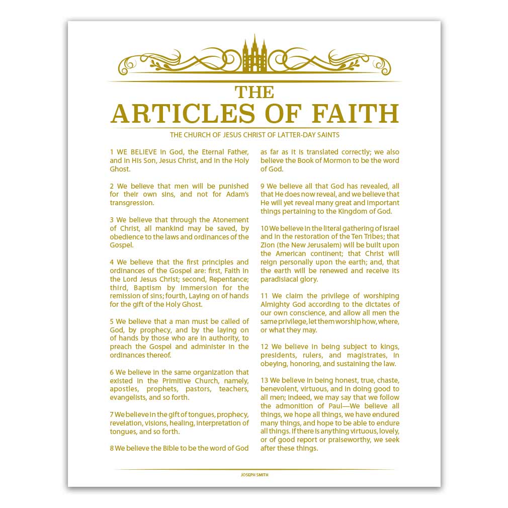 This specially designed Articles of Faith Poster is a perfect addition to your home. This style is also available on our Family Proclamation poster, personalized Family Proclamation poster, and...
