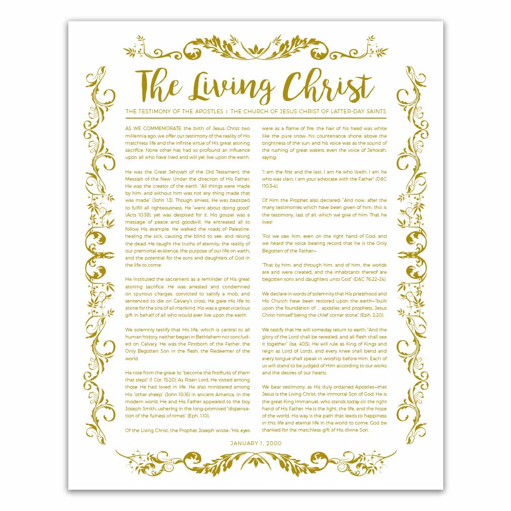 This specially designed Living Christ is a perfect addition to your home. This style is also available on our Family Proclamation posters and Articles of Faith posters.This poster is available in four different sizes:11 x 17 inches16 x 20 inches18 x 24 inches24 x 36 inchesThere are also three different colors:BlackGoldCharcoalSelect your options above.This comes as a coated matte finish print on 35lb heavyweight paper.Also comes in a:Gold printableBlack printableCharcoal printable ...