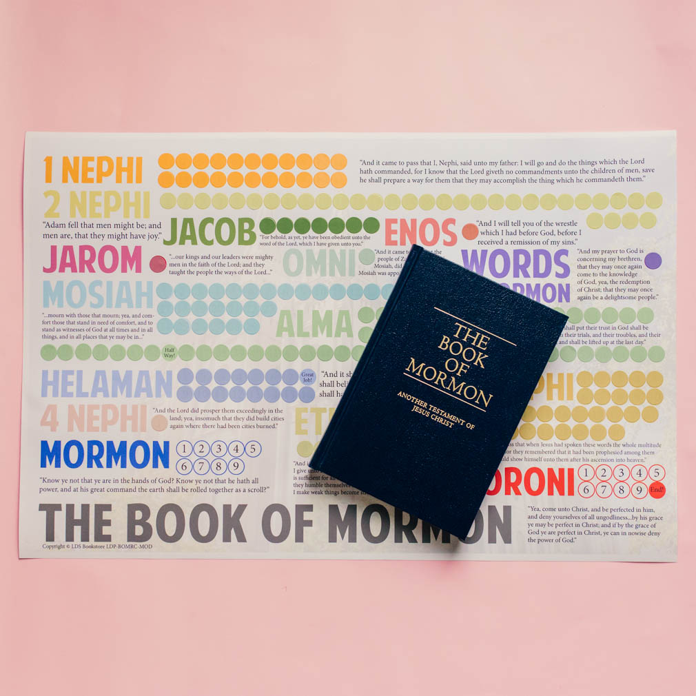 An LDSBookstore.com exclusive, this poster will help and remind you to keep track of your Book of Mormon reading.This is a printable product. It comes in the form of a PDF file sized at 8 x 11 inches.