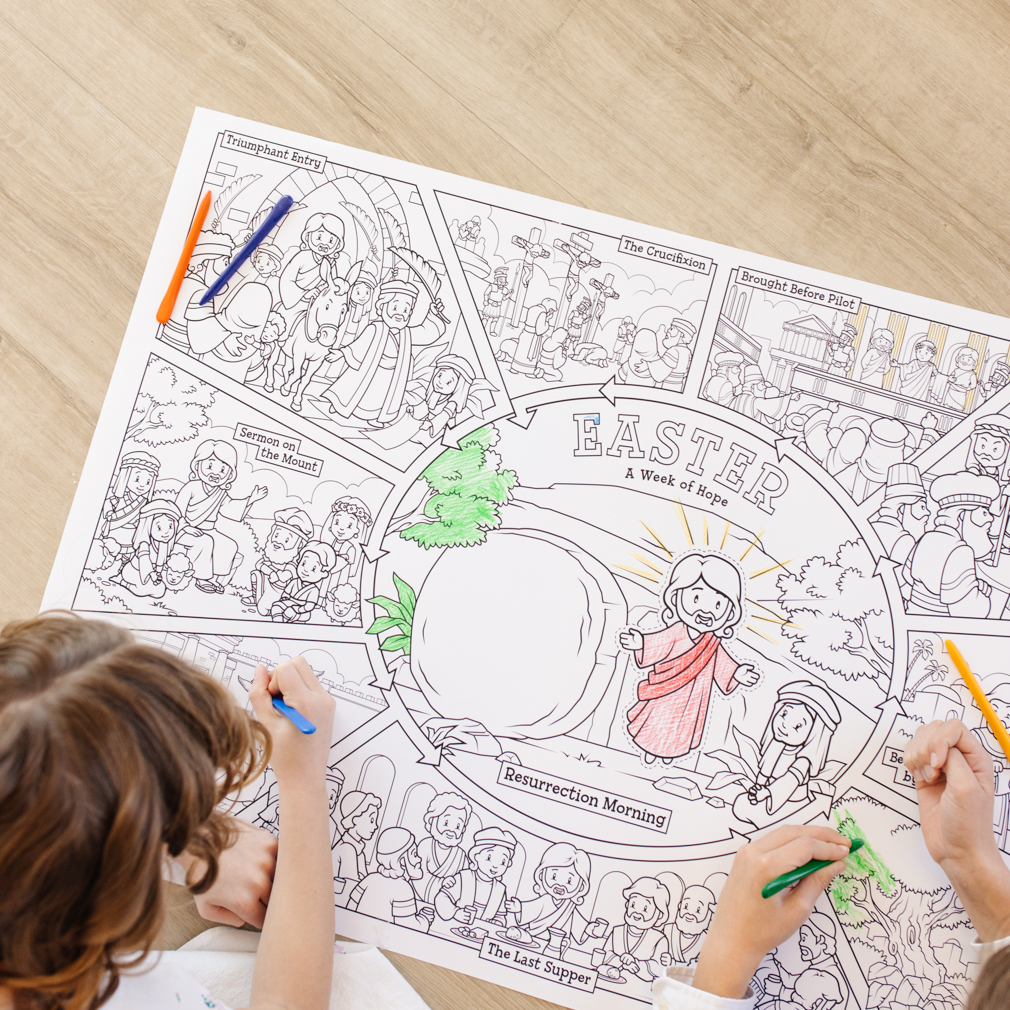 Make Easter more meaningful this year with our Giant Easter Week Coloring Poster! Measuring 20" x 16" on durable, heavy-duty paper, this beautifully illustrated poster highlights key scenes from...