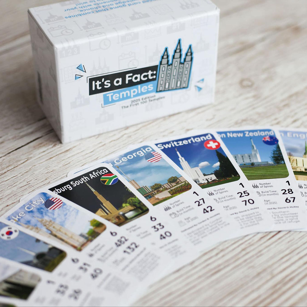 Do you love facts? Temples? and games... if so this is the game for you! The rules are pretty straightforward, making it a great game for the whole family. 1. Shuffle the entire deck and deal some or all of the cards between players. We suggest starting with approx. 20 cards - game play is longer with more cards in circulation. 2. Players hold the cards in their hand in a deck, with only the top card visible to them. This is the card in play for that round, don’t let others peek at your card!...