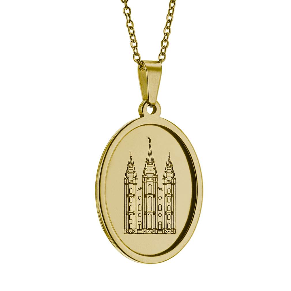 Keep the temple close to your heart with this special temple pendant necklace. It features a cameo setting and high-quality engraving of the Salt Lake City Temple. Choose between silver or gold finishes. Each pendant is just a little over an inch tall and just under an inch wide. If you're looking for an inspiring gift to give a woman of God, consider this temple necklace.