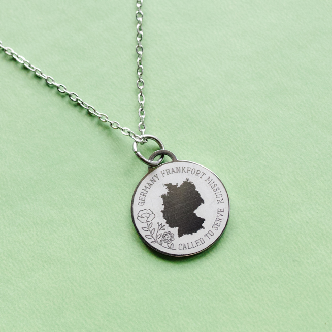 This is the perfect gift for a departing or returning sister missionary, or a missionary mom, grandmother, or friend. This necklace is a beautiful reminder of the time served in the service of Heavenly Father and His children. Available exclusively at LDSBookstore.com, our mission necklace is custom engraved specific to your mission and features an image of the country or state where you or your loved one served. Get yours today!