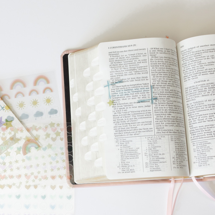 Our gospel study stickers are perfect for scriptures, journals, and manuals. Transparent and sized for standard scriptures, they can be used to highlight, remember, emphasize, decorate, and more. There are stickers to help you take notes, frames verses, mark certain themes, and learn to cherish your scriptures as you study. They feature a cute watercolor design that looks great without covering up the text of the verses too much. You'll also get a carrying card to help keep your stickers...