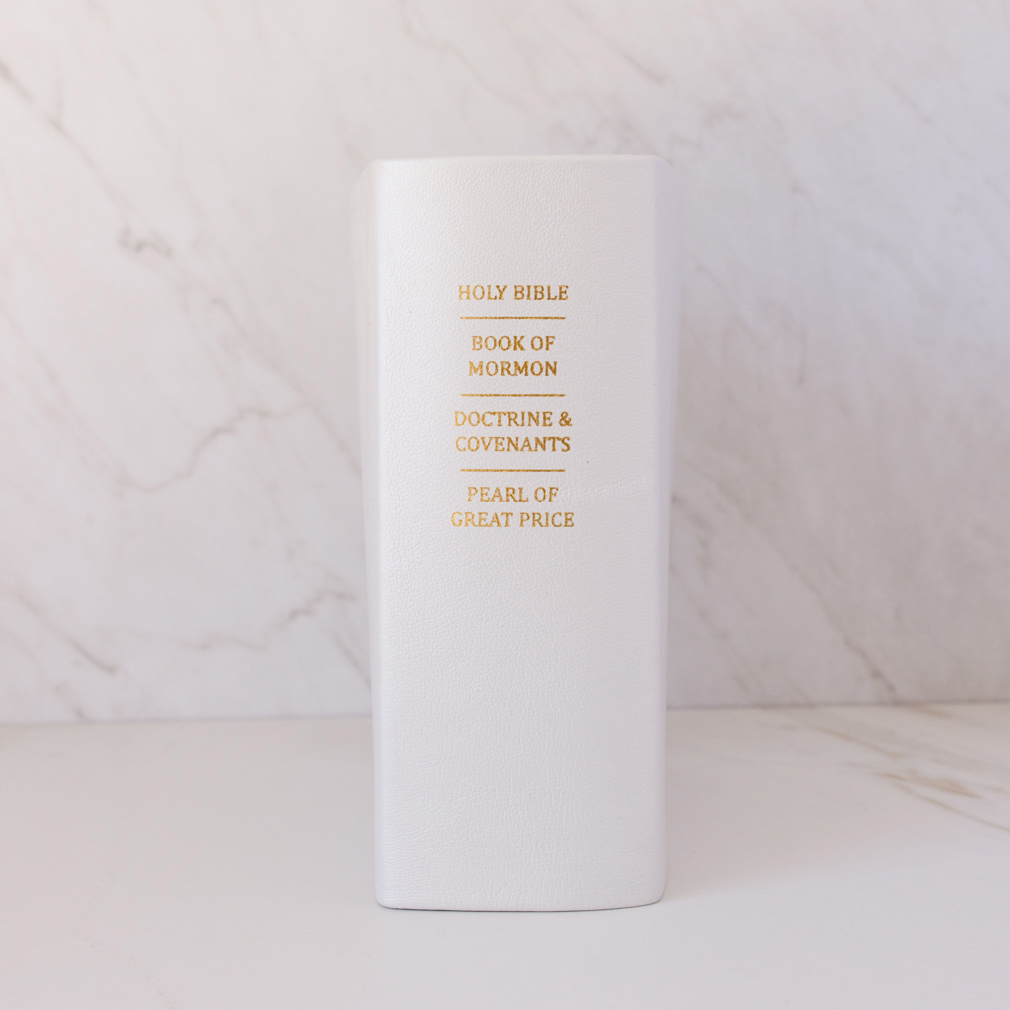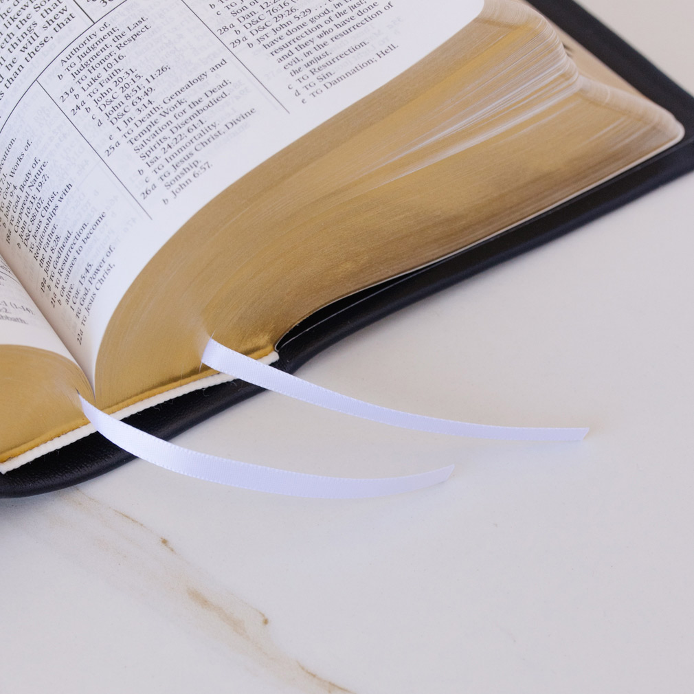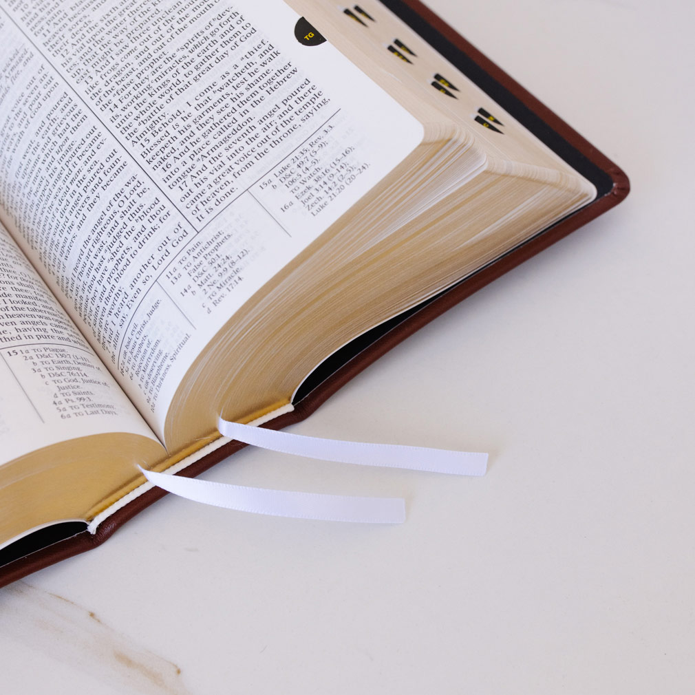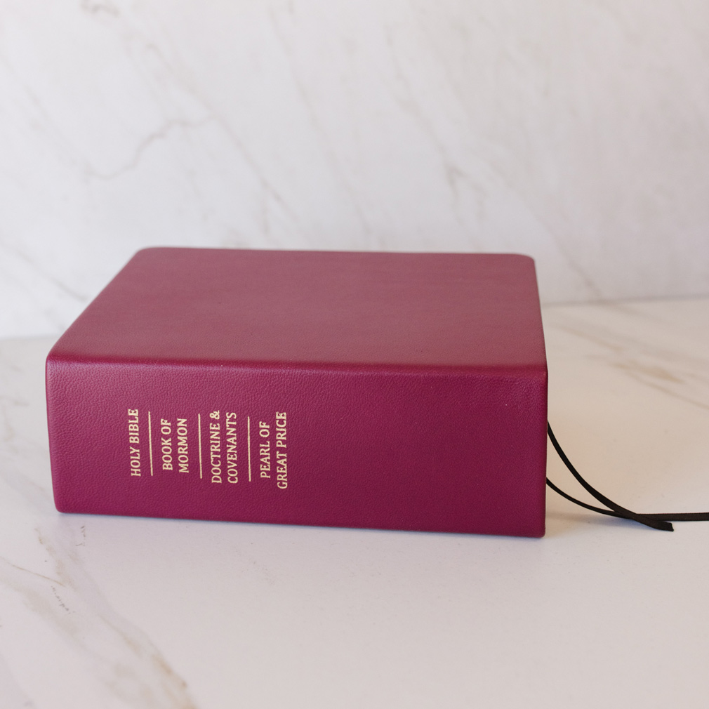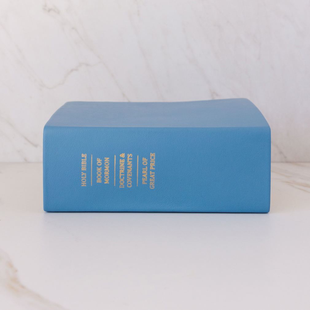 Our in-stock color scriptures have already been made with precision and care and are ready to ship, ensuring a quick delivery for those who need them fast! Select quantities are available in our most popular colors. Name embossing is available to add a personalized touch to these beautiful, hand-made genuine leather scriptures.