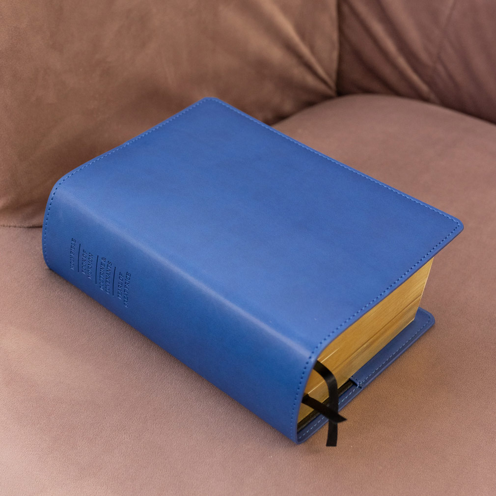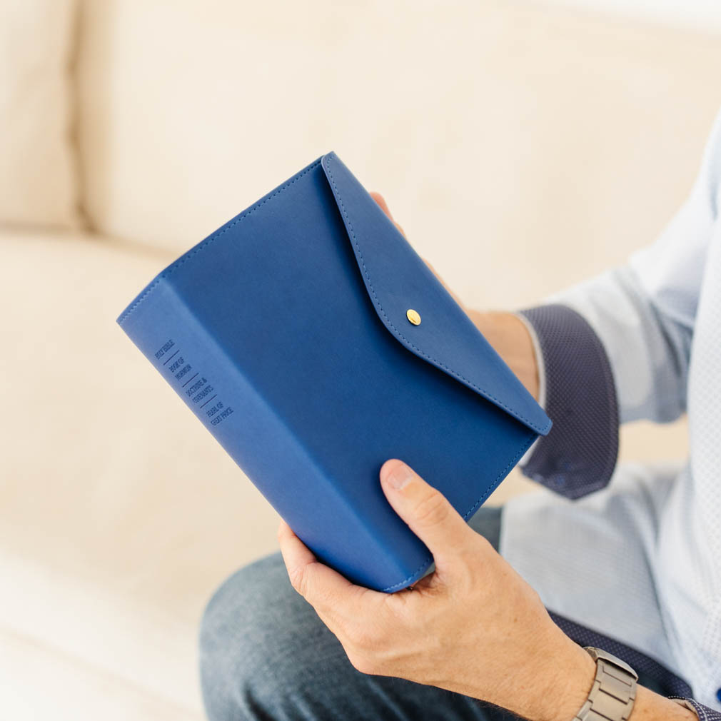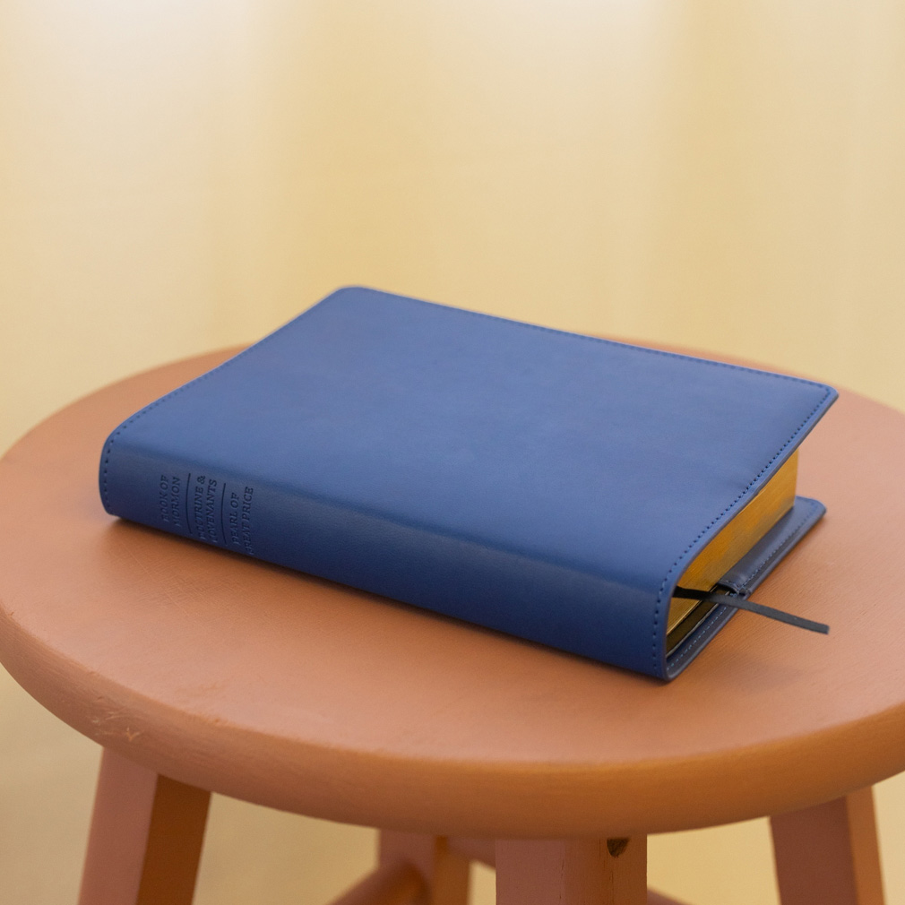 Our dark blue simulated leather scripture cover is a great way to bring a fresh new look to your treasured scriptures. Personalize your scripture cover with a name and message for an additional fee. This scripture cover best fits the current size of quad combination scriptures with a cover that measures 7½" x 5¼". "What a glorious blessing! For when we want to speak to God, we pray. And when we want Him to speak to us, we search the scriptures; for His words are spoken through His...