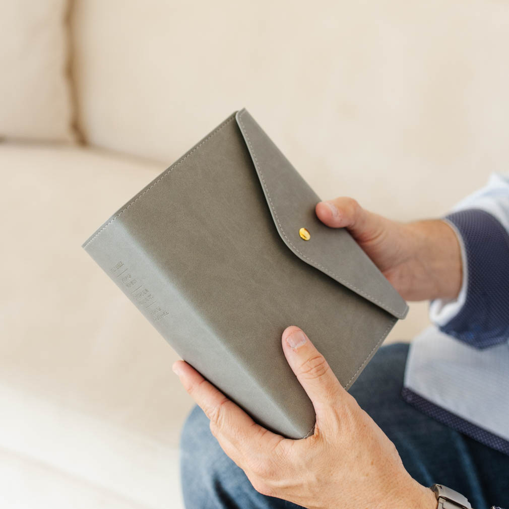 Our gray simulated leather scripture cover is a great way to bring a fresh new look to your treasured scriptures. Personalize your scripture cover with a name and message for an additional fee. This scripture cover best fits the current size of quad combination scriptures with a cover that measures 7½" x 5¼". "What a glorious blessing! For when we want to speak to God, we pray. And when we want Him to speak to us, we search the scriptures; for His words are spoken through His prophets. He...