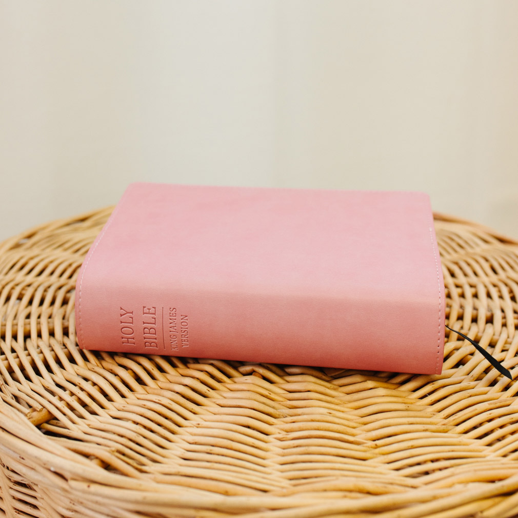 Our pink simulated leather scripture cover is a great way to bring a fresh new look to your treasured scriptures. Personalize your scripture cover with a name and message for an additional...