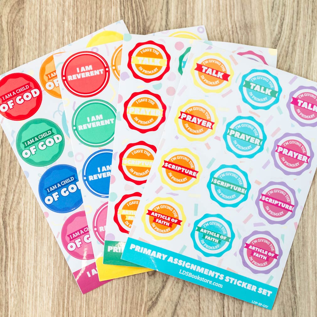 This special bundle includes all the stickers you need to make your Primary children smile. It's a must have for all Primary leaders! Each bundle includes: 1 "I Am a Child of God" sticker sheet1 "I Am Reverent" sticker sheet1 "Primary Assignments" sticker sheet1 "Primary Recognitions" sticker sheet Give them to your Primary children for a wide variety of occasions. You'll get four sheets in a pack, for a total of 48 stickers. These fun and colorful...